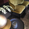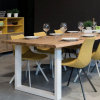 - Robuuste eethoeken gemaakt van oud hout gecombineerd met eigentijdse