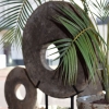 - Robuuste eethoeken gemaakt van oud hout gecombineerd met eigentijdse